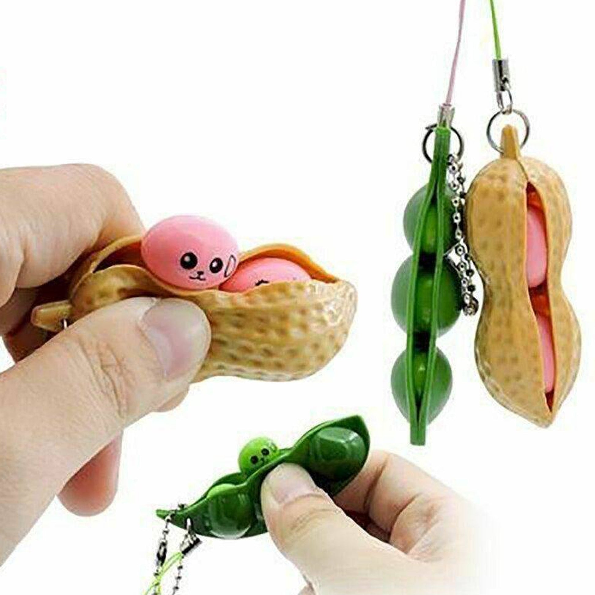Squeeze Beans Keychain Stress Relieving Sensory Peanuts Fidget Toy
